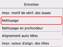 N'effectuez aucune autre opération avant la fin du nettoyage de la tête d'impression par l'imprimante. L'opération dure environ 1 minute.