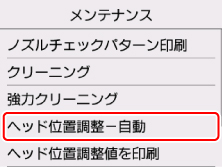 - [メンテナンス]画面で[ヘッド位置調整値を印刷]を選ぶと、現在の調整値を印刷して確認することができます。