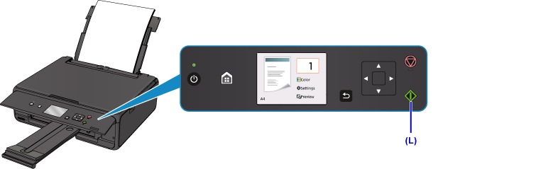 Patvirtinkite popieriaus parametrus ir paspauskite mygtuką Pradėti (Start) (L).
