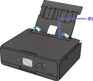1. Atidarykite galinio dėklo dangtį (A) ir ištraukite popieriaus atramą (B).