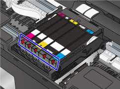 Rašalo talpykla įdėta netinkamai arba išjungta rašalo lygio nustatymo funkcija. Jei rašalo talpyklos nepavyksta užfiksuoti reikiamoje vietoje, įsitikinkite, kad nuo rašalo talpyklos apačios nuėmėte oranžinį apsauginį dangtelį, tada spauskite viršutinę rašalo talpyklos dalį, kol rašalo talpyklą užfiksuosite.
