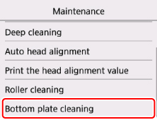 Pasirinkite Apatinės plokštės valymas (Bottom plate cleaning).