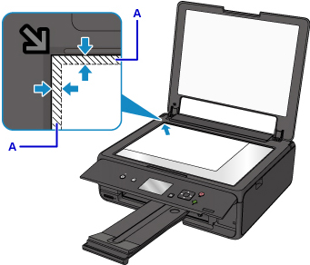 Принтер не може виконати сканування заштрихованої області (A) (1 мм (0,04 дюйма) від країв скла експонування).