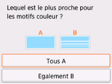 Sur l'écran de confirmation, sélectionnez le motif le plus proche du motif de vérification des buses imprimé.