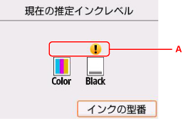 [推定インクレベル]を選ぶインクの残量についてお知らせがあるときは、図のAの部分にマークが表示されます。