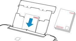 はがき、往復はがきに印刷するときは、郵便番号を下に向けてセットしてください。