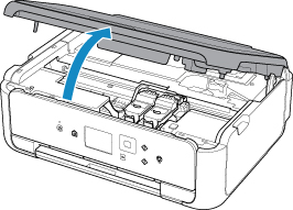 1. Suėmę už ąselių atidarykite rašalo kasetės fiksavimo dangtelį.