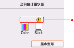 估计墨水量。如果存在任何关于剩余墨水量的信息,区域(A)中会显示一个符号。