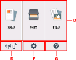可以从LCD屏幕的主页屏幕上选择功能,如复印或扫描。