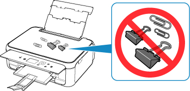 อย่าวางวัตถุใดๆ ไว้บนฝาครอบเอกสาร วัตถุจะตกลงไปในเทรย์ด้านหลัง เมื่อเปิดฝาครอบเอกสารและจะทำให้เครื่องพิมพ์ทำงานผิดปกติ นอกจากนี้ ให้วางเครื่องพิมพ์ไว้ในที่ที่จะไม่มีวัตถุหล่นลงไปทับ