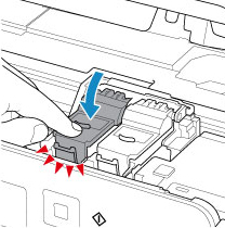 Натискайте кришку фіксації картриджів із чорнилом, доки вона з клацанням не стане на місце.