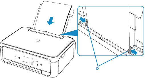 Bīdiet papīra vadotnes (D), lai salāgotu tās ar abām papīra kaudzītes malām.