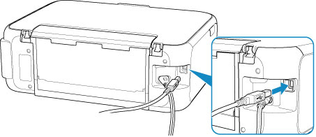 Povežite tiskalnik in računalnik s kablom USB, kot je prikazano na spodnji sliki. Vrata USB so na hrbtni strani tiskalnika.