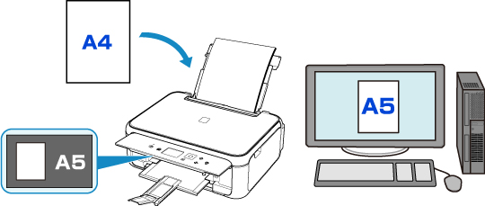 - Kadar je na primer nastavitev papirja za tiskanje ali kopiranje A5 in so informacije o papirju, ki so registrirane v tiskalniku, A4, tiskalnik začne tiskati ali kopirati z nastavitvijo A5 na naložen papir.