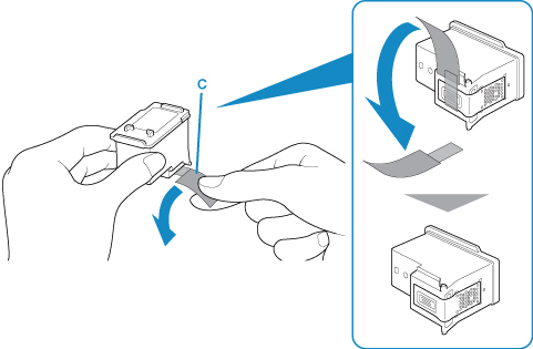 1. Вийміть новий картридж FINE з упаковки та обережно видаліть захисну стрічку (C).