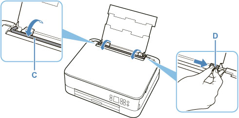 A jobb oldali papírvezetőt (D) eltolva nyissa szét a két papírvezetőt.