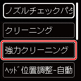 プリントヘッドのクリーニングを行っても効果がない場合は、強力クリーニングを行ってください。強力クリーニングは、通常のクリーニングよりインクを消耗しますので、必要な場合のみ行ってください。