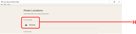 Srityje Computer: spustelėkite Browse (H) ir pasirinkite aplanką, kuriame saugomos norimos spausdinti nuotraukos.
