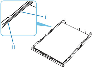 Menţineţi înălţimea stivei de hârtie sub proeminenţele (I) de la ghidajele pentru hârtie.