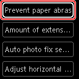 4. Vyberte položku Zabrániť odretiu papiera (Prevent paper abrasion) a stlačte tlačidlo OK (B).