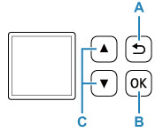 Tryck på knappen Bakåt (Back) (A) för att återgå till föregående skärm.