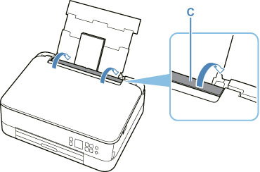 Nyissa ki a hátsó tálca fedelét (A). Húzza egyenesen felfelé és hajtsa hátra a papírtámaszt (B).