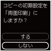 コピーの初期設定を両面印刷にする確認画面が表示されます。