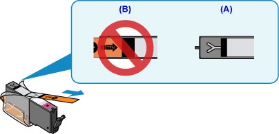 إذا كان الشريط اللاصق البرتقالي لا يزال موجودًا على خزان الحبر (‏B)‏، فقم بإزالته.