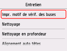 Imprimez le motif de vérification des buses afin de déterminer si l'encre s'écoule correctement de la buse de tête d'impression.