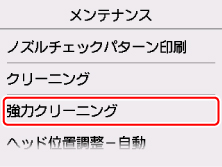 プリントヘッドのクリーニングを行っても効果がない場合は、強力クリーニングを行ってください。強力クリーニングは、通常のクリーニングよりインクを消耗しますので、必要な場合のみ行ってください。