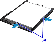 Dopasuj ustawienie prowadnic papieru (C) do długości i szerokości papieru.
