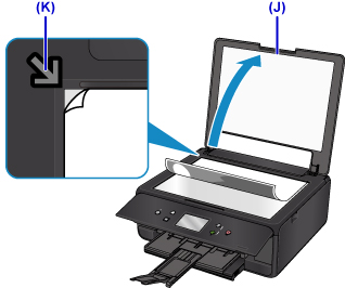 Otwórz pokrywę dokumentów (J).