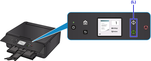 Kağıt ayarlarını onaylayın, ardından Siyah (Black) düğmesine veya Renk (Color) düğmesine (L) basın.
