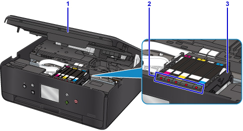 - تستخدم في مسح المستندات الأصلية ضوئيًا. وقم أيضًا برفعها وفتحها لاستبدال خزان الحبر، أو للتحقق من مصباح الحبر، أو لإزالة الورق المحشور داخل الطابعة.