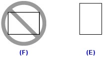 قم دائمًا بتحميل الورق بالاتجاه الطولي (E). يمكن أن يؤدي تحميل الورق بالاتجاه العرضي (F) إلى انحشار الورق.