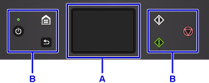 Juhtpaneel koosneb puuteekraanist (A) ja nuppudest (B).