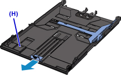 Kassetti A4- või Letter-suuruses paberi laadimiseks vajutage kassetil olev lukk (H) alla ja seejärel tõmmake kassett välja.
