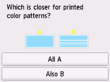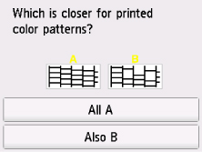 (Näide: magenta mustrit ei prindita)Puhastamine on vajalik. Valige Samuti B (Also B), seejärel valige puhastamise kinnituskuval Jah (Yes).