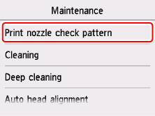 6. Valige Prindi pihusti kontrollmuster (Print nozzle check pattern).