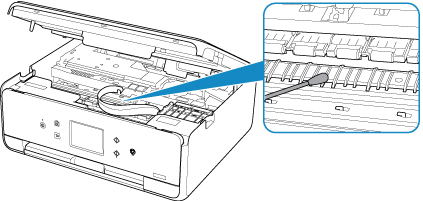 Kui probleem ei lahene ka pärast uut puhastamist, võivad printeri sisemuses olevad eenduvad osad olla määrdunud. Pühkige tint sakkidelt puuvillase nuustiku või muu sarnase vahendiga.