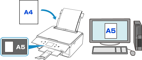 - Näiteks kui printimise või kopeerimise paberimäärang on A5 ja printeri jaoks registreeritud paberiteave on A4, laadige enne printimise või kopeerimise alustamist paber suurusega A5.
