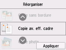 Vous pouvez réorganiser l'ordre d'affichage du menu de copie.