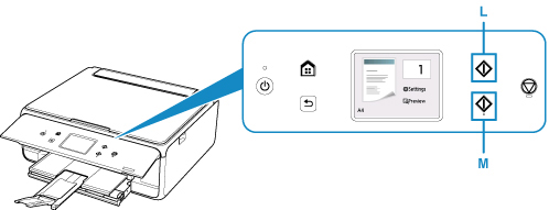 14. Confirmați setările pentru hârtie, apoi apăsați butonul Negru (Black) (L) sau butonul Culoare (Color) (M).