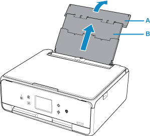Avage tagasalve kaas (A) ja seejärel tõmmake paberitugi (B) üles.