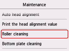 Valige suvand Rulliku puhastamine (Roller cleaning).