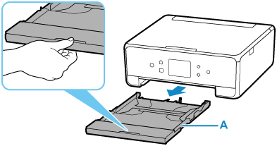 Monter kassettedækslet (B), og sæt kassetten i printeren.