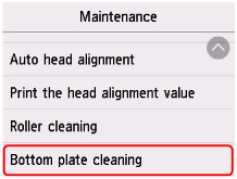 Vælg Rensning af bundplade (Bottom plate cleaning).
