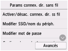 Modifiez les paramètres de connexion directe sans fil en suivant la procédure ci-dessous.