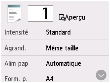 Vous pouvez modifier des paramètres de copie tels que l'agrandissement ou l'intensité.