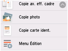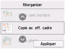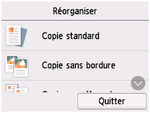 Vous pouvez réorganiser l'ordre d'affichage du menu de copie.